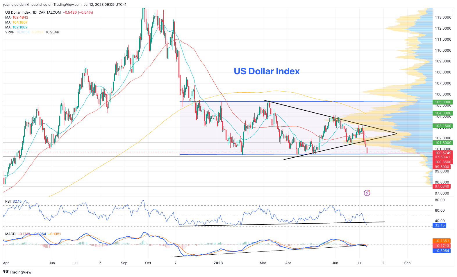 Following the CPI figure, the US dollar index traded lower just like the Treasury yields which allowed risk assets such as Bitcoin and the stock market to surge towards yearly highs.