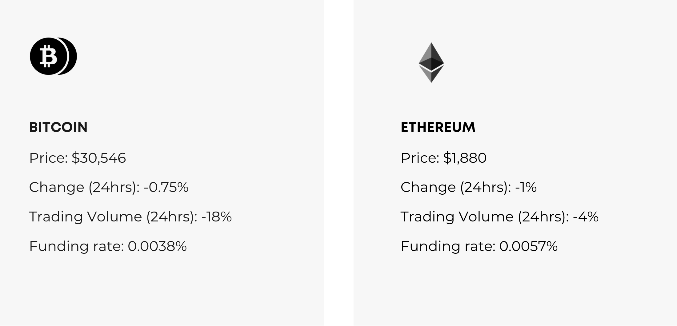 BTCUSDT is stuck in a tight range between 29,900 and 31,250. As much as the stock market gained a lot of inflows following the soft inflation print, the crypto market overall isn’t feeling the same amount of love. We’ve noticed in the past that sometimes there’s a lag between the overall liquidity and the crypto market. It doesn’t help when we keep witnessing negative headlines regularly coming out. As long as the US Dollar Index is coming down, then risk assets should continue to flourish. Not sure what the exact catalyst will be, but eventually, Bitcoin will break above these yearly highs and test the next major resistance area around $33,000.