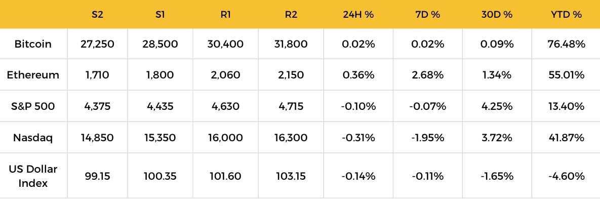 Now for Bitcoin. Prices are still trying to recover from the recent drop. Many are hopeful that we will retest the previous support of $29,500 - $29,700 that will now act as resistance, especially after we witnessed a rebound off the 50-day moving average which should act as temporary support.