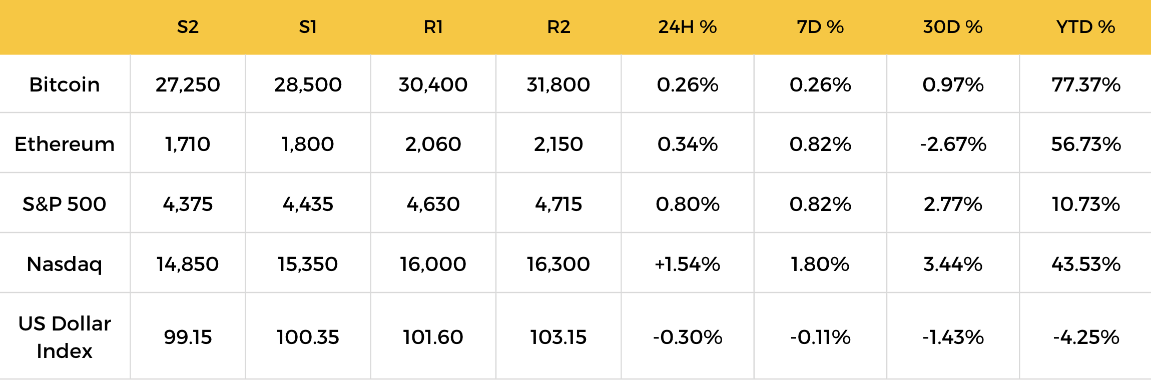Bitcoin was under a bit of pressure yesterday afternoon after a report that the Bank of Japan was mulling a change to its yield curve control policy, before bouncing off an intraday support near 29,125. The market is risk-on this morning as the inflation data came in better than expected which pushed BTC from 29,250 to 29,500.
